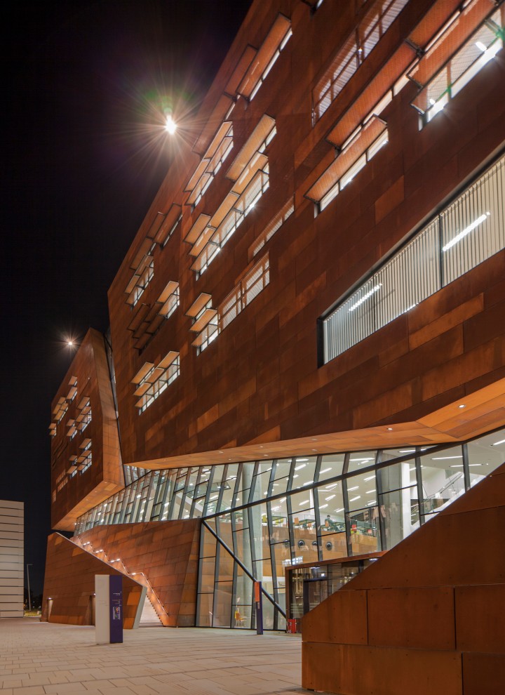 Dass Lehre und Forschung im Zentrum stehen, wird durch das imposante Library & Learning Center der irakisch-britischen Architektin Zaha Hadid untermauert. Um dieses gruppieren sich fünf Gebäudekomplexe, etwa das Teaching Center, in dem sich der Großteil der Hörsäle befindet. Ein weiterer bestimmender Faktor war die Gliederung der Universität in Departments: Deren Institute waren bisher auf diverse Standorte verstreut – nun sind sie in vier Departmentgebäuden zusammengefasst, was das universitäre Leben sowohl für Studierende als auch für Lehrende wesentlich erleichtern wird.