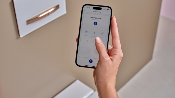 In der Geberit Home App finden Sie eine digitale Fernbedienung. Damit steuern Sie via Bluetooth Ihr Dusch-WC bequem mit dem Smartphone.
